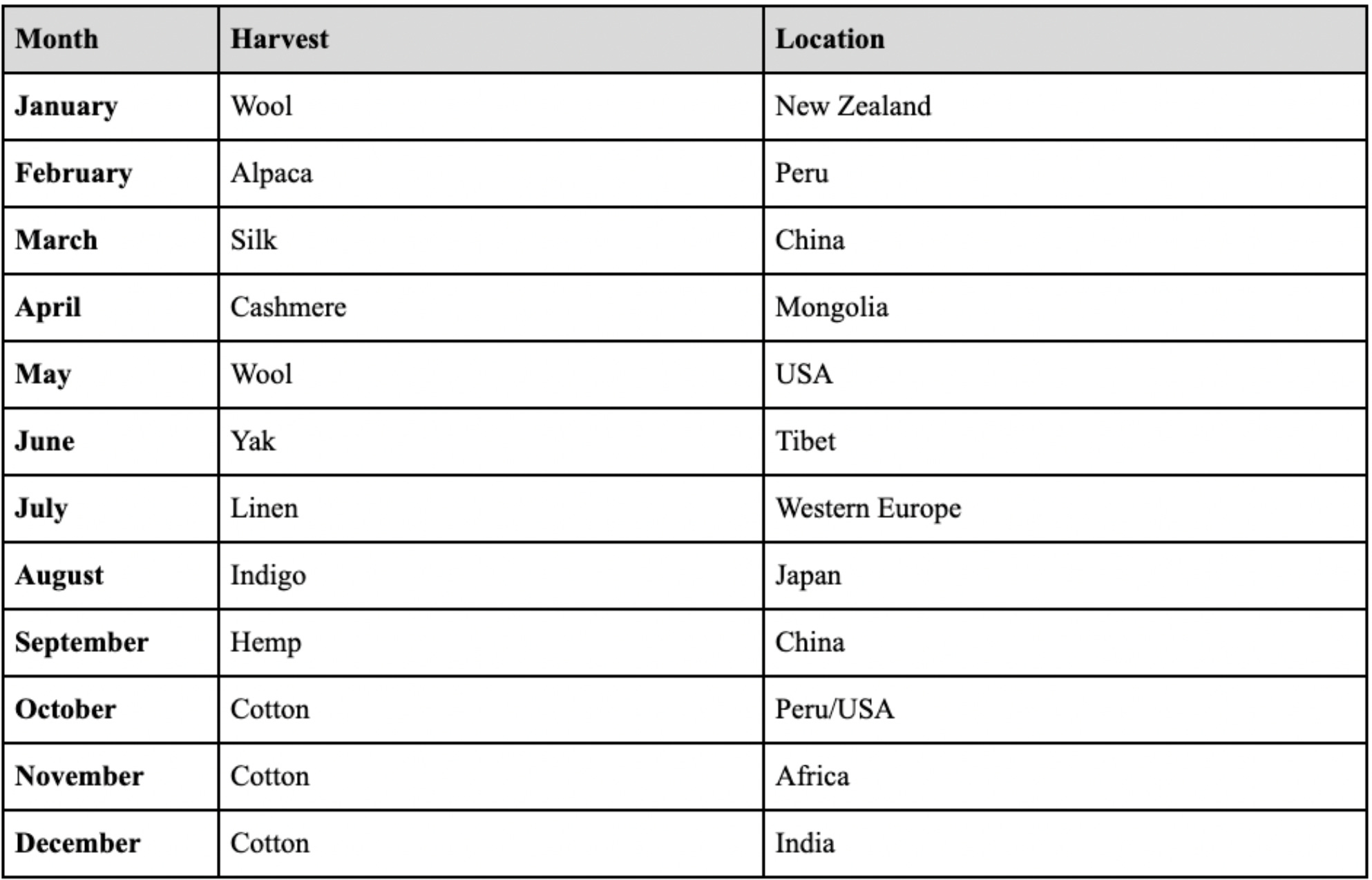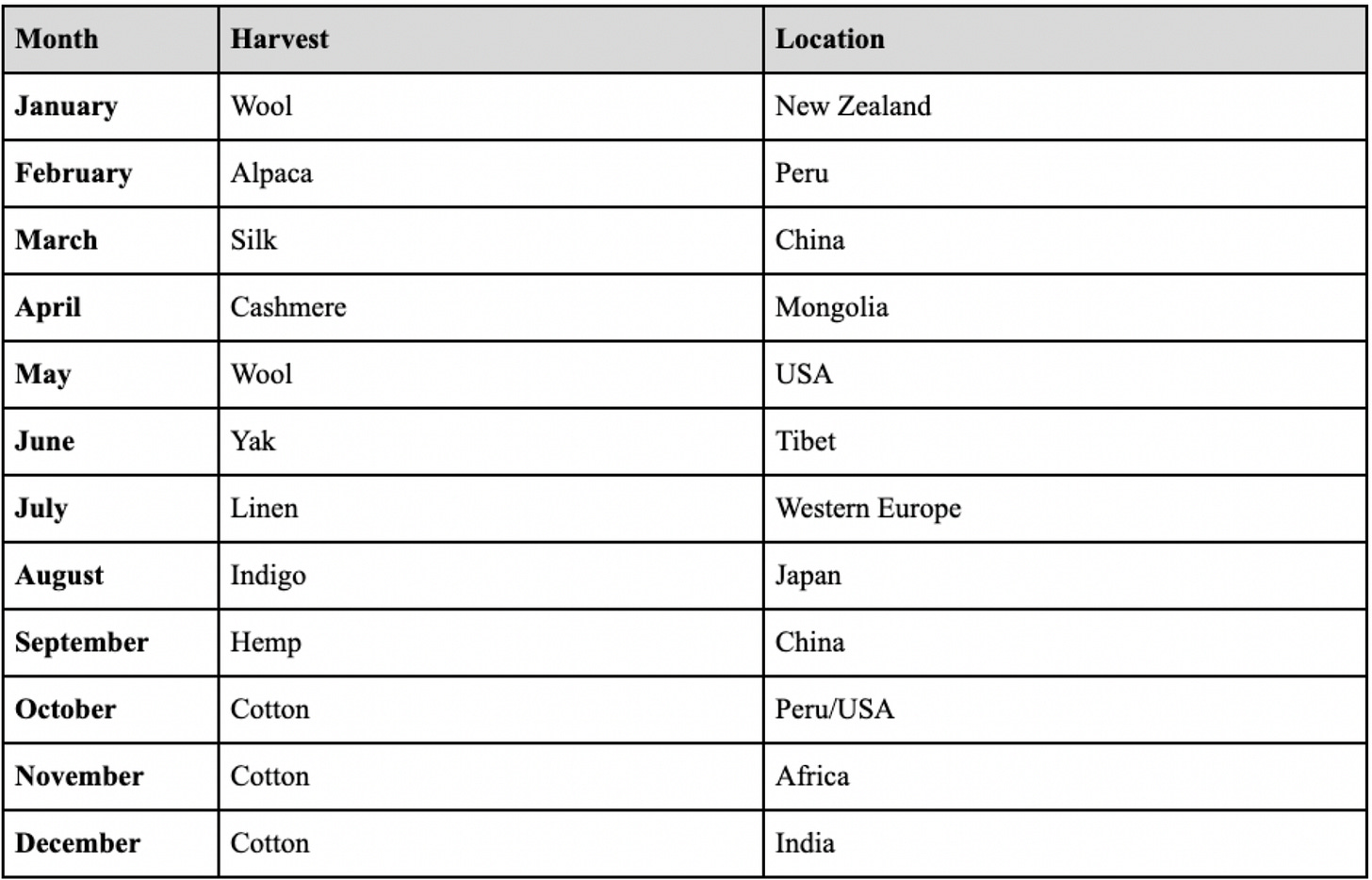 Everything we wear comes from the Earth and is a part of natural cycles. As always, each monthly post will reflect on a natural fiber harvested that month– musings on natural fibers that are seasonally relevant (Figure 1).